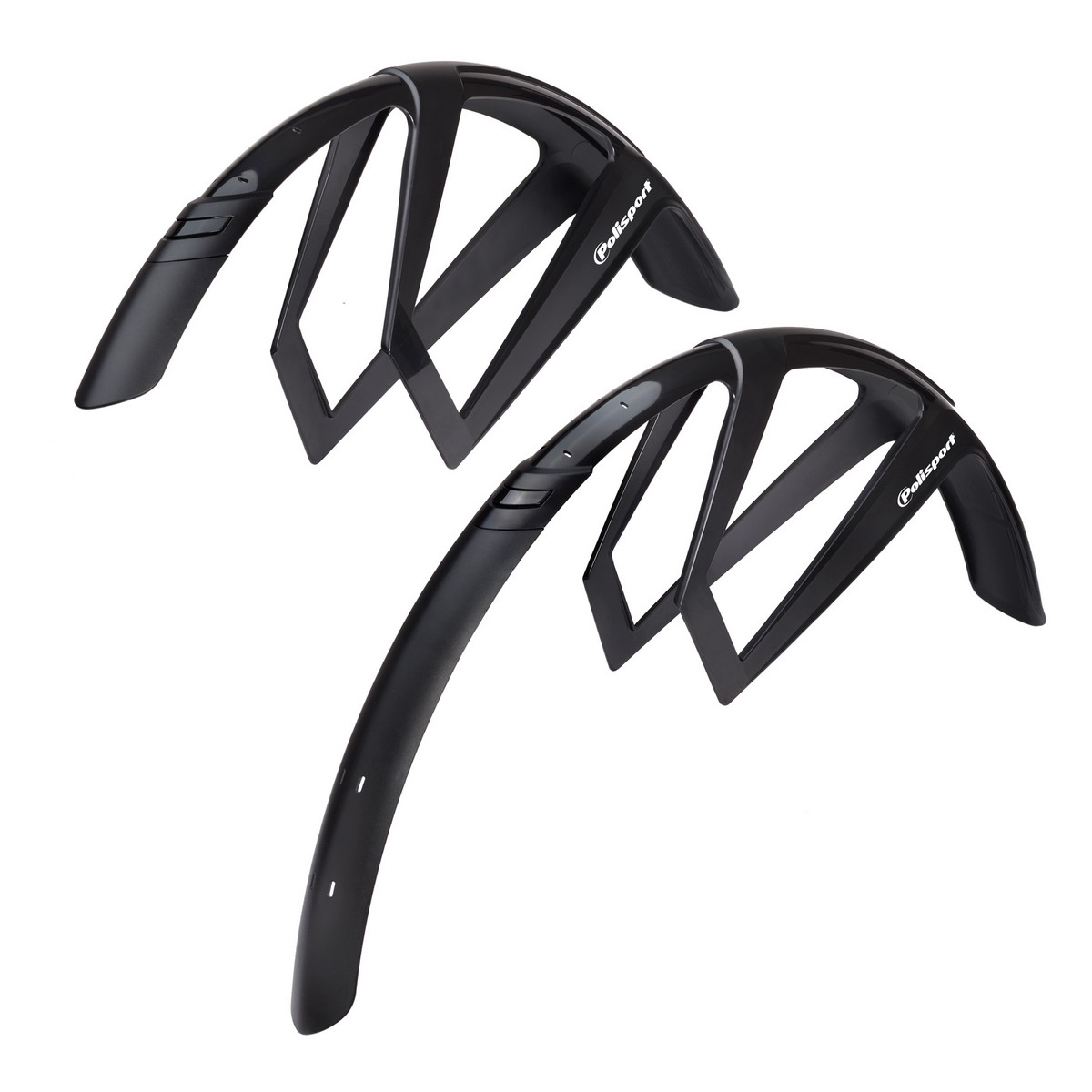 Coppia di parafanghi Polisport G-Mud ideali per bici da gravel e compatibile con bici da 28"/700C. Questi parafanghi permettono di agganciare o sganciare lo spoiler in base alle esigenze di copertura della ruota, presentano una sezione da 50 mm e un peso di 370 g.