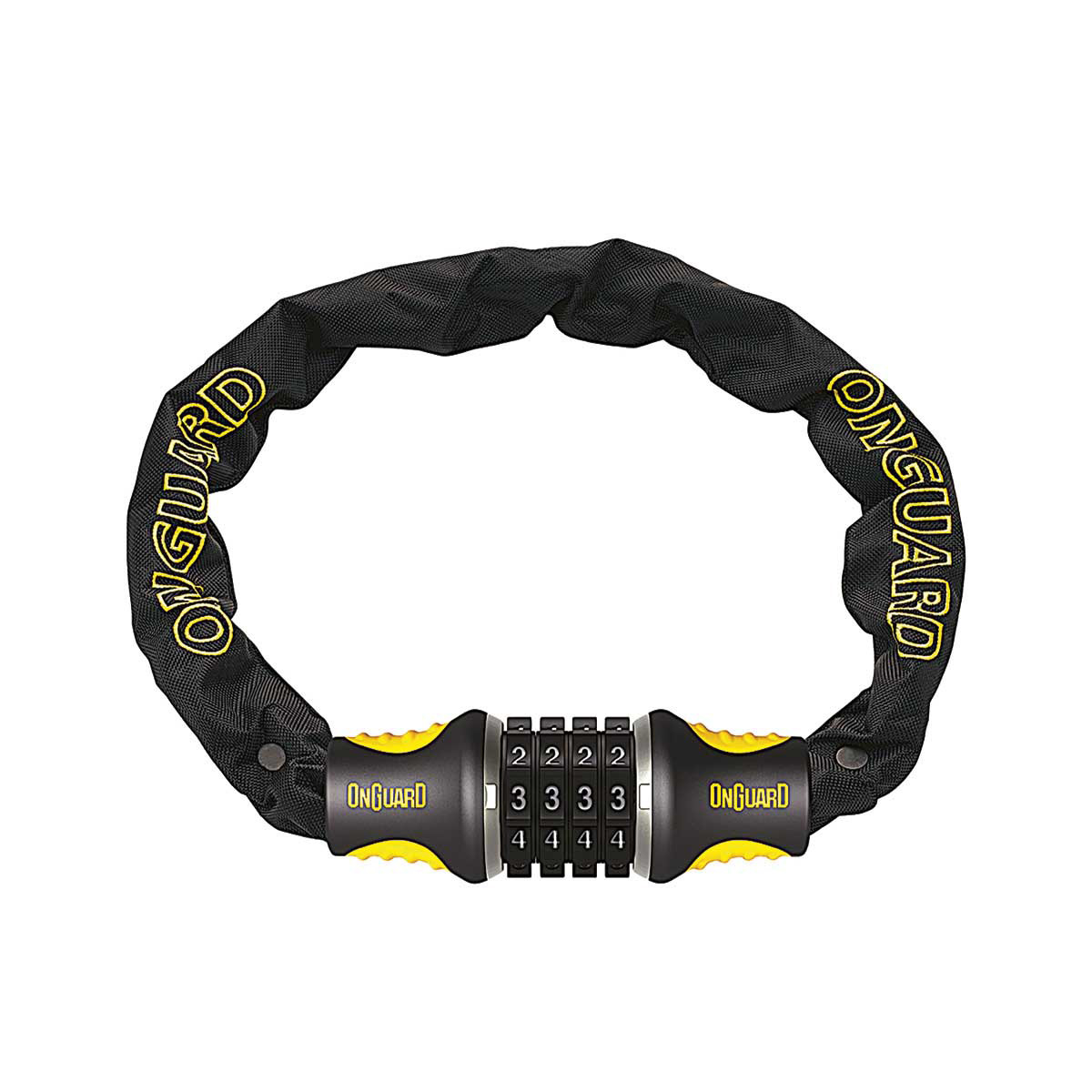 Catena Onguard con sistema di chiusura SBC Steel Ball Combo che utilizza 4 ghiere rotanti in acciaio resistenti agli strappi e con 10.000 combinazioni possibili.