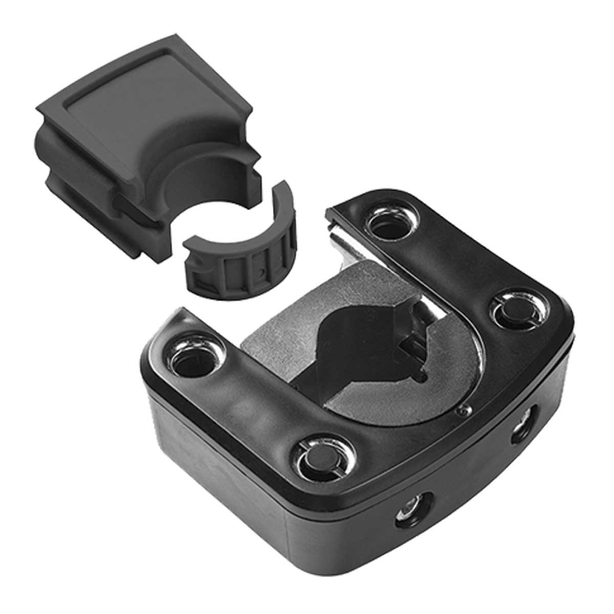 Attacco per fissare al cannotto dello sterzo tutti i seggiolini anteriori Bobike. E' adatto a cannotti di diametro da 22 a 32mm ed è un ricambio originale certificato EN 14344.