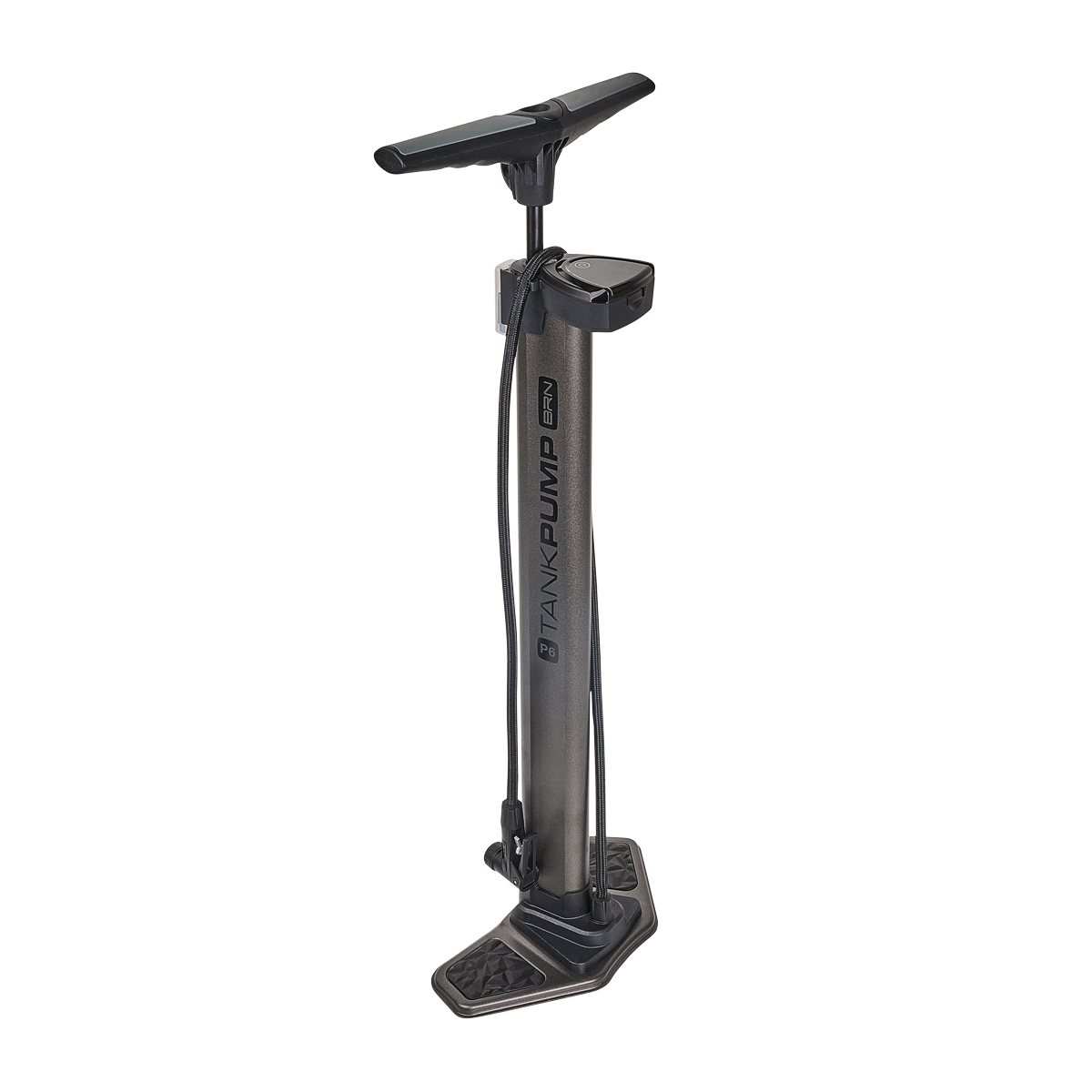 Pompa BRN P6 Tank ideale per coperture tubeless. E' dotata di una tanica interna e raccordo intelligente compatibile con tutti i tipi di valvole. Alta 72 cm con manico ergonomico e basamento antiscivolo, include una batteria per il display digitale, due adattatori per il gonfiaggio di materassini e uno spillo per palloni.