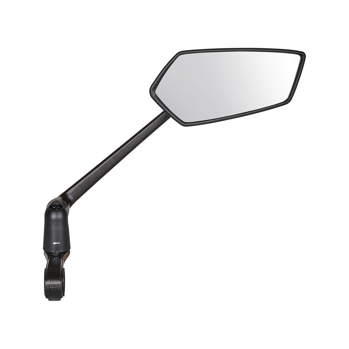 Specchio retrovisore anti-collisione e anti-scuotimento destro con regolazione a 360°, attacco in alluminio adatto a manubri diametro 22-25,4 mm. Lo specchio misura 65 x 150 mm ed è composto da vetro curvo con base in alluminio.