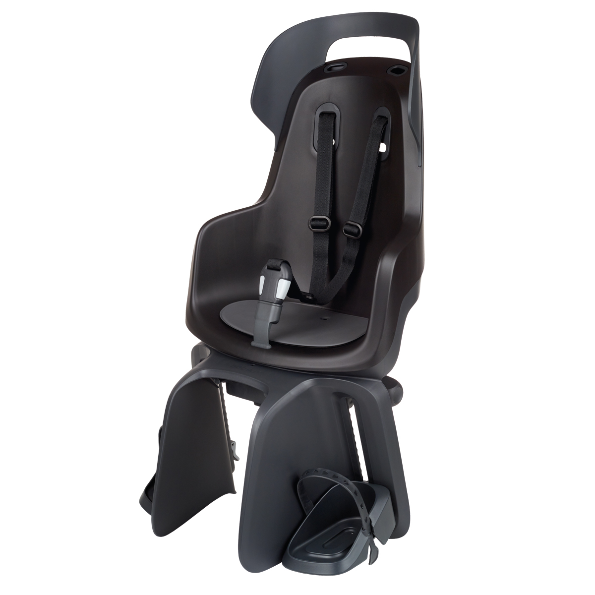 Seggiolino Bobike Go nero reclinabile (da 0° a 20°) posteriore con attacco al portapacco.