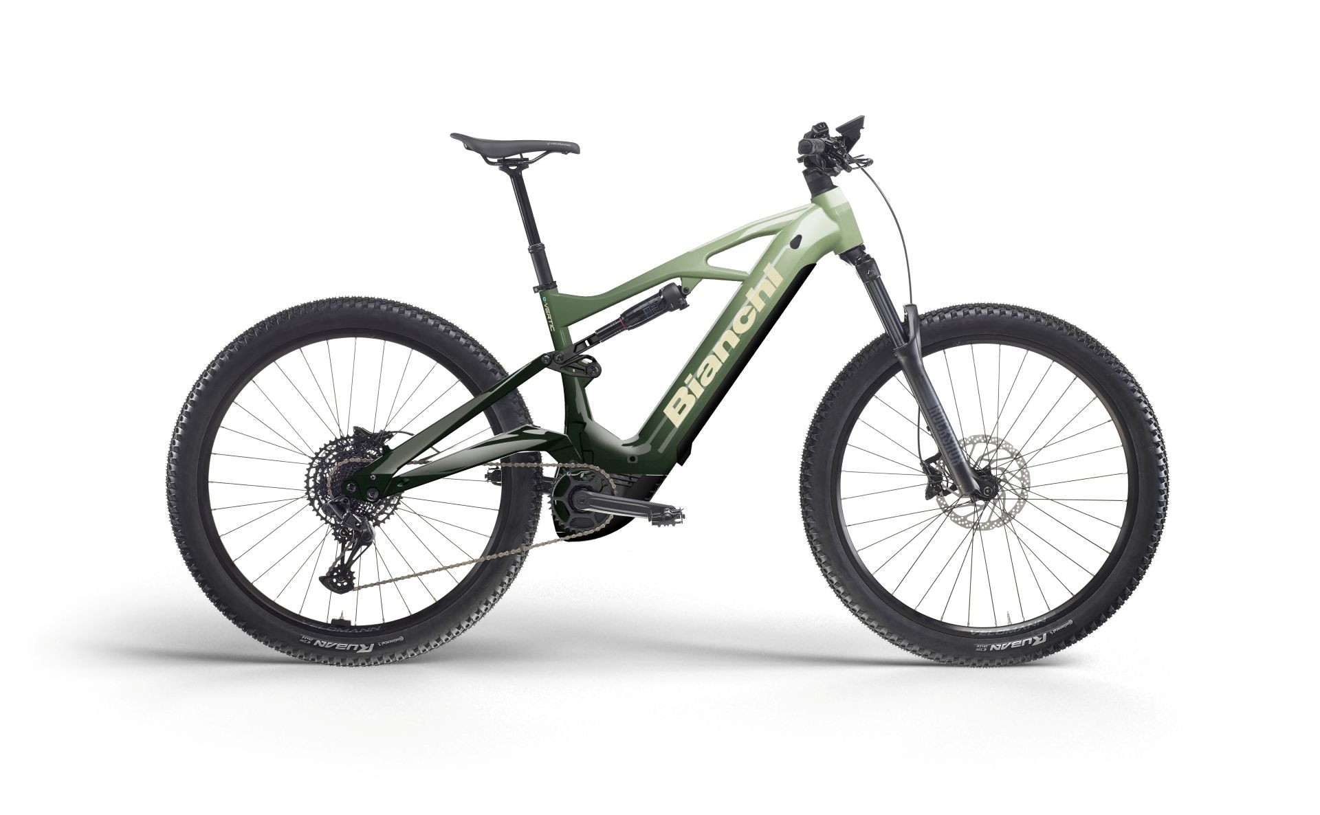 Telaio Bianchi e-Vertic FX, alluminio, Perno passante posteriore 12x148 mm, Pinza posteriore Post mount 180, Escursione anteriore 150 mm, Escursione posteriore 140 mm, Cavi interni nella serie sterzo, Compatibile con batteria 800 Wh, taglie 40-44-48-53