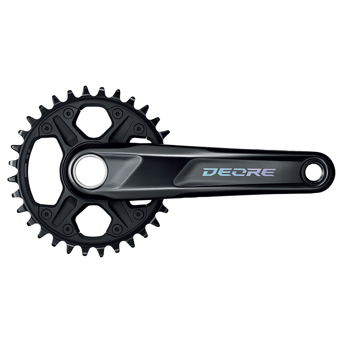 La guarnitura SHIMANO DEORE FC-M6100-1 è caratterizzata da una struttura completamente rinnovata, con corone a montaggio diretto, profilo dentatura speciale per una migliore ritenzione della catena e un fattore Q da 172 mm compatibile con telai con battuta da 142 mm o 148 mm.